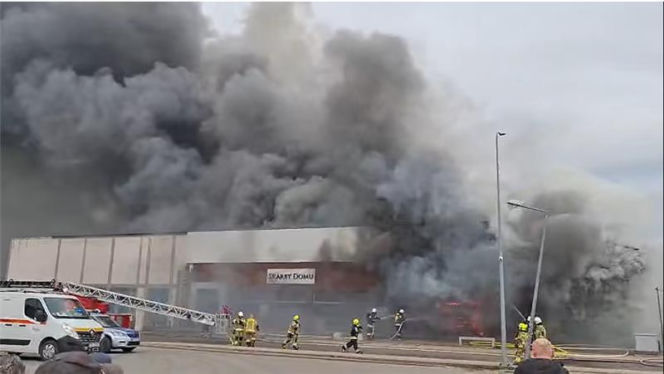 Zgłoszenie o zdarzeniu wpłynęło po godzinie 9:00 . Płomienie szybko objęły cały budynek sklepu.