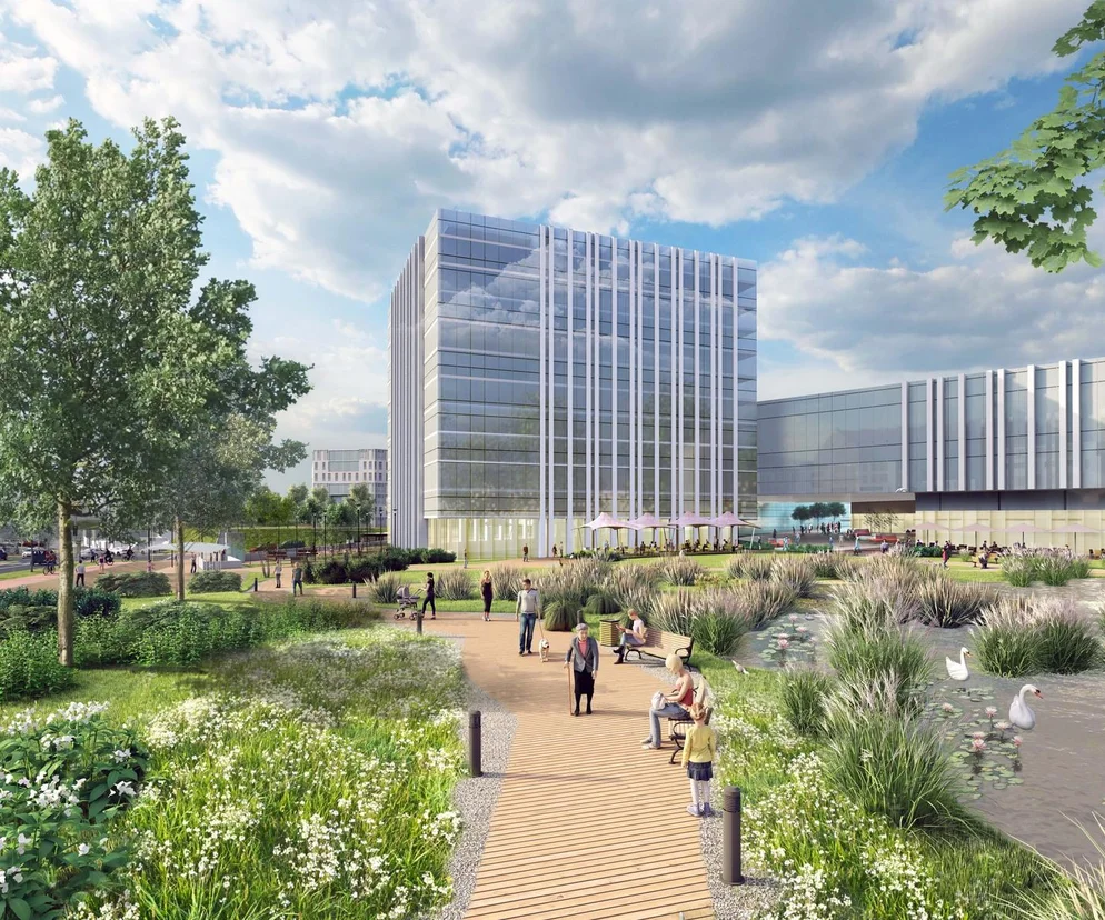 - Dzielnica ma stać się "miastem 15-minutowym" z pełnym dostępem do usług, szkół i terenów zielonych.