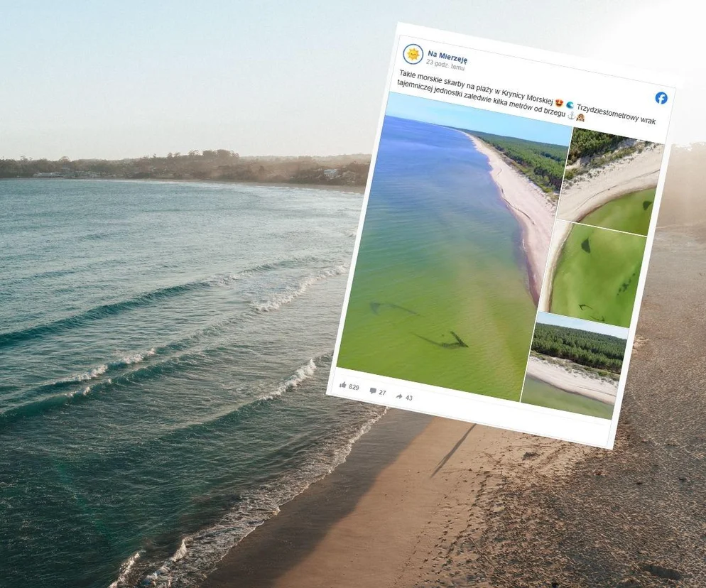 "Takie morskie skarby na plaży w Krynicy Morskiej. Trzydziestometrowy wrak tajemniczej jednostki zaledwie kilka metrów od brzegu"